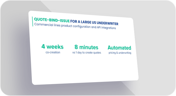QUOTE-BIND-ISSUE FOR A LARGE US UNDERWRITER Commercial lines product configuration and API integrations Embedded 4 weeks 8 minutes Automated through our APIs co-creation vs 1 day to create quotes pricing & underwriting CoverGo Page 5 Page 7