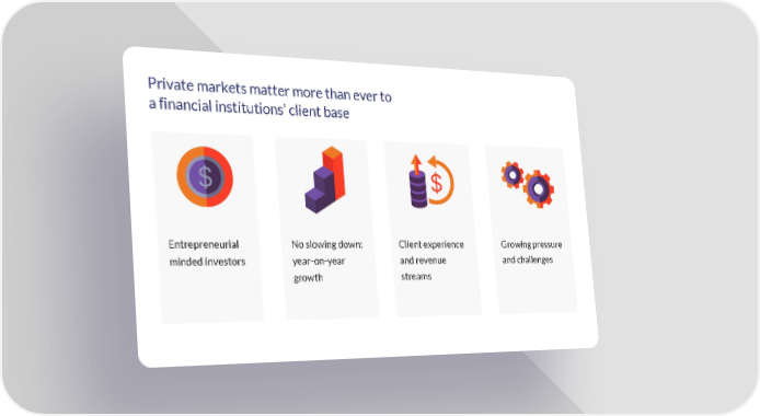 Private markets matter more than ever to a financial institutions’ client base Entrepreneurial No slowing down: Client experience Growing pressure minded investors year-on-year and revenue and challenges growth streams Delio Page 1 Page 3