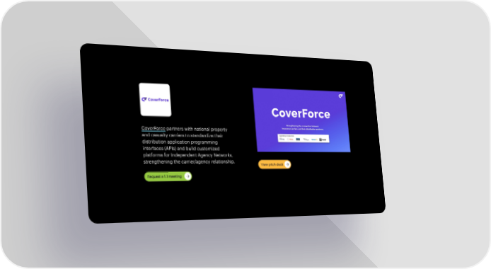 Meet the Companies Learn more about each of the 10 companies through their videos and pitch decks and request 1:1 meetings for a later date.