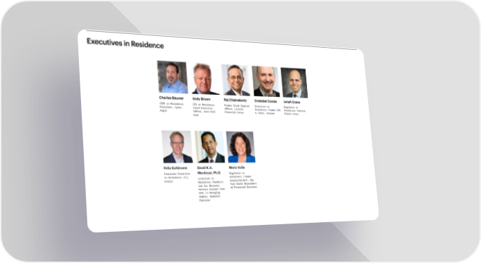 Executives in Residence Charles Blauner Andy Brown Raj Chakraborty Cristobal Conde Jonah Crane CISO in Residence; CTO in Residence; Former Chief Digital Executive in Regulator in President, Cyber Chief Executive Officer, Lincoln Residence; Former CEO Residence; Partner, Aegis Officer, Sand Hill Financial Group & Chair, SunGard Klaros Group East Felix Kuhlmann David K.A. Maria Vullo Insurance Executive Mordecai, Ph.D. Regulator in in Residence; CEO, Scientist in Residence; Former Everly Residence; RiskEcon Superintendent, New Lab for Decision York State Department Metrics Courant Inst. of Financial Services NYU; Co-Managing Member, Numerati Partners
