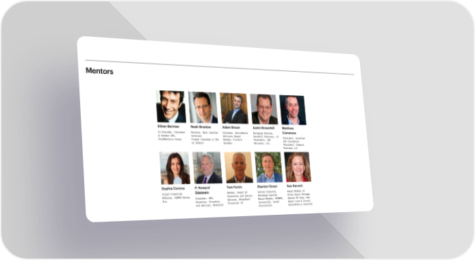 Mentors Ethan Berman Noah Breslow Adam Broun Justin Brownhill Matthew Co-founder, Chairman Partner, Bain Capital Chairman, Secondmind Managing Partner, Commons & former CEO, Ventures Advisory Board SenaHill Partners, LP President, Verified RiskMetrics Group Former Chairman & CEO Member, FinTech President, JAB USD Foundation at OnDeck Sandbox Advisors, Inc. President, Commons Partners LLC Sophia Corona P. Howard Tom Fortin Stanton Green Sue Harnett Chief Financial Edelstein Member, Board of Senior Director, Board Member of Officer, tZERO Group, Chairman, CEO, Directors and Senior Blumberg Capital Extra Space Storage, Inc. Director, Investor, Advisor, Steadfast Board Member, NYSHEX, Sphere 3D Corp, How and Advisor, BioCatch Financial LP Connectifi, VerAI Women Lead & Invest, Discoveries Goalsetter,& Oriental