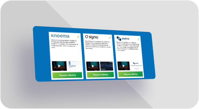 SkyHive is an AI technology that revolutionizes Knoema is a knowledge and data management Sigma Ratings is a counterparty risk platform that reskilling for workers and workforces. SkyHive rapidly firm that works with corporates, buyside and leverages machine learning and deep domain identifies internal skill sets, compares to the external sellside firms to manage, catalog and discover all expertise to enable automated entity-level risk labor market, identifies emerging/future skills, and of their subscription, public and internal data benchmarking and ongoing monitoring of non-credit automates the navigation of reskilling to the future assets. risks at scale. state in real-time. Request a Meeting Request a Meeting Request a Meeting