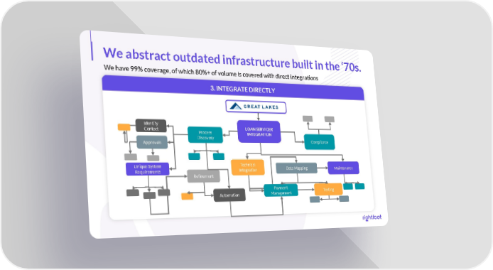 We abstract outdated infrastructure built in the ‘70s. We have 99% coverage, of which 80%+ of volume is covered with direct integrations 3. INTEGRATE DIRECTLY Identify Contact LOAN SERVICER Process INTEGRATION Discovery Compliance Approvals Unique System Technical Requirements Integration Data Mapping Maintenance Refinement Payment Testing Automation Management